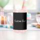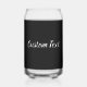 Dieses schwarze Dosenglas hat Text in einem weißen Skript. Der Text kann bearbeitet oder gelöscht werden.