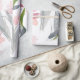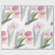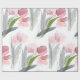 Das einfache, moderne Packpapier zeigt ein zartes, gezeichnetes, florales Aquarellbild mit rosa Frühlingtulips mit grünen und grauen Blätter auf weißem Hintergrund.