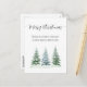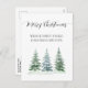 Diese einfache Urlaubspostkarte ist rustikal und doch minimalistisch gestaltet mit drei Aquarellkiefern und elegantem Schriftzeichen mit Schriftzeichen: Frohe Weihnachten! Es gibt Platz für eine kurze Notiz oder Nachricht sowie für Ihre Namen oder Unterschrift. Wunderschöne Art, die Grüße der Saison zu senden.