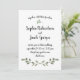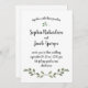 Diese kleine, minimale Hochzeitseinladung bietet minimale, grüne Blätter in Aquarellfarbe auf einem sauberen, weißen Hintergrund. Trendy Skript-Typografie fügt einen frischen Look, um diese Einladung perfekt für rustikale, minimalistische oder jede elegante botanische Freiluft-Hochzeit.