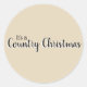 Einfache Beige Land Weihnachtsaufkleber. Beigefarbener Hintergrund. In Schwarz mit weißer Schattierung sind die Worte "Es ist ein Weihnachtsland" in zwei Arten von Typografie.