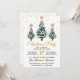 Diese elegante Weihnachtsfeier-Party Einladung besticht durch schneebedeckte Kiefernbäume mit goldenen Sternenakzenten und glitzernden Urlaubsmotiven. Die schneebedeckte Kulisse und die festlichen Goldelemente schaffen ein einladendes, warmes Design, das perfekt zum Feiern der Saison im Stil ist.