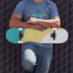 Einfache Wellen - Blumenmuster Türkis und Gelb Skateboard