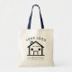 Moderne und minimalistische Retro-Tasche können Sie einfach mit dem Button "Personalisieren" an Ihren Firmennamen und Ihre Website anpassen. Ein perfektes Geschenk für einen Kunden, einen Hauskäufer oder einen Immobilienmakler mit einer Kontur eines Hauses und Schrift und moderner Typografie.