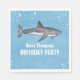 Dieses niedliche Design besticht durch eine schlichte Dekoration aus blauem Party, einen niedlichen Ozean aus Party, mit Aquarell-Haifischfischen, eine blaue Papierserviette, einen Cocktail-Trinkbehälter-Drink, mit wild lebender Wildnis nautisch maritim Leben, Haie Fisch grauschwarz, ein lustiges, festliches Picknick einladen, ideal für Sommerspass schwimmen Party, für Hinterhof Kindergeburtstag Party