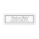 Dieses einfache, elegante und geschmackvoll gestaltete Retourenlabel besticht durch eine doppelte Rahmen, in der Ihr Text hinterlegt wird. Klassische Schriftzeichen werden für die Namen von Braut und Bräutigam verwendet, gepaart mit zeitlosen Serif-Schriftart für die Adresse.