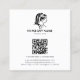 Einfaches, minimalistisches, weißes Haarsalon-Logo auf dunkelgrauem Hintergrund mit umgekehrtem Weiß auf der Rückseite der Karte und QR-Code.