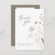 Ein einfaches Wildblume Hochzeit Foto danke Ihnen Karte. Dieses Dankeschön zeigt ein boho blumengeschmücktes Wildblume-Thema mit neutralen Braun-, Brän- und Salbei-Grün-Erdtönen. Fügen Sie ein Hochzeitszertifikat hinzu und passen Sie den Text an, um Ihre eigene Danksagung für Ihre Hochzeitsgäste zu erstellen.