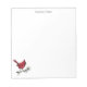 Dieses einfache und elegante Notizblock zeigt eine handgezeichnet Abbildung eines Roten Kardinals, der auf einem Zweig in schwarzer Tinte steht. Personalisieren Sie mit Ihrem Namen.