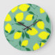 Einfache Zitrone, grüne Hintergrunddrucke. Große Wanduhr