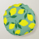 Einfache Zitrone, grüne Hintergrunddrucke. Rundes Kissen