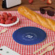 Einfacher Austausch von Logos und Text | Dunkelbla Pappteller