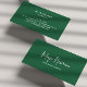Mit dieser stilvollen, dunkelgrünen Visitenkarte machen Sie einen bleibenden Eindruck. Dieses Design, das Ihren Namen in einem großen, kühlen, eleganten und handgeschriebenen Schriftart im Signaturstil verströmt, besticht durch Eleganz und Professionalität. Eine anpassbare Tagline oder Berufslinie fügt eine persönliche Touch hinzu. Die Rückseite bietet drei Zeilen für Ihren Namen, Beruf und vollständige Kontaktdetails, um eine polierte und berufliche Präsentation zu gewährleisten. Eine anpassbare Zeile unten erlaubt es Ihnen, Ihren Beruf oder Ihre Tagline mit Stil zu präsentieren. Die Rückseite der Karte bietet drei Zeilen für Ihren Namen, Beruf und vollständige Kontaktdetails, um ein poliertes und berufliches Aussehen zu gewährleisten. Dieses Design ist ideal für Kreative, Unternehmer und Dienstleister. Es eignet sich insbesondere für Innenarchitekten, Hochzeitsplaner, echte Anwesen-Agent, Fotografen, Berater, Life Coaches, Makeup-Künstler, Stylist, Boutique-Besitzer, Kalligrafen und vieles mehr. Egal ob Sie sich vernetzen, Kunden treffen oder Ihre Marke wachsen lassen - diese moderne und stilvolle Visitenkarte steht Ihnen sicher zur Seite. ALLE FARBEN SIND GEEIGNET!