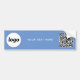 Einfaches Logo und QR-Code mit Text zur Werbung für Ihr Unternehmen. Ersetzen Sie das Logo und den QR-Code durch Ihren eigenen und ändern Sie den Text und die Hintergrundfarbe, um ihn anzupassen. Minimalistisch und beruflich, um Ihre Marke widerzuspiegeln.