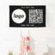 Einfaches Logo mit Text und QR-Code, um Ihr Unternehmen zu fördern. Ersetzen Sie das Logo und den QR-Code durch Ihren eigenen, und ändern oder entfernen Sie den Text, um ihn anzupassen. Minimalistisch und beruflich, um Ihre Marke widerzuspiegeln. Weiß auf schwarzem Hintergrund.