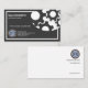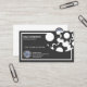 Ein einfacher kreativer Entwurf eines weißen Halbrundes mit einem zugrunde liegenden abstrakten Stück schwarzen Gängen; Vorstehender gemacht mit einer einkapselnden weißen Rechteckgrenze, die die äußeren Kanten der Karte bedeckt. Ihre renommierte Namen- und Jobtitel-Erholung an der obersten links Ecke. Direkt unter ist Ihre Sloganwahl, die von Ihren Geschäftslogo- und -kontaktdetails gefolgt wird.
