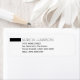 Ein einfaches und übersichtliches Rücksendeetikett mit Namen und Anschrift (eleganter schwarzer Schriftart) auf weißem und sauberem Hintergrund