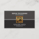Ein einfacher Retro Entwurf. Karte wird in Hälften des Graus und des Schwarzen unterteilt. Eine weiße Linie grenzt diese zwei Spalten ab. In der Mitte ist ein quadratisches Goldmotiv einer Zuhauseszene. Ihr Name und Stellenbezeichnung sind an der Spitze, die vom Handelsnamen gefolgt wird und treten mit Details an der Basis in Verbindung.