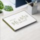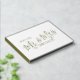 Minimalistischer, moderner Mr. & Mrs. Goldfolie-Text und ein kleines Herz auf dem weißen Gästebuch für Hochzeiten und Jubiläumsveranstaltungen. Personalisieren Sie mit Ihren eigenen Namen Nachrichten oder Ereignisse. Weitere passende Artikel sind verfügbar. Design: www.mylittleedenweddings.com