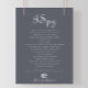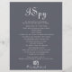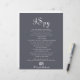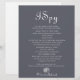 Dieser Abend ist ein Hochzeitsspiel, das sich in Spionage befindet und perfekt für eine rustikale Hochzeit ist. Das Design besticht durch einen eleganten Kalligraphie-Schriftart im blauen Hintergrund.