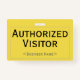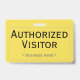 Dieses einfache Abzeichen-Design enthält die Meldung "Authorized Visitor", und einen benutzerdefinierbaren Firmennamen oder eine andere benutzerdefinierte Nachricht. Es verfügt auch über einen Single-Rahmen mit abgerundeten Ecken. Ein Abzeichen wie dieses könnte dazu benutzt werden, zu zeigen, dass jemand in einem Unternehmen oder am Arbeitsplatz ein autorisierter Gast oder Besucher ist. [~Z0000307]