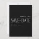 Hochzeit Save the Date. Einfach. Hochzeitsseite. Schwarzer Rücken. Sie können "die" auf "unsere" anpassen. Moderner Schriftart. Monogramm.