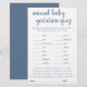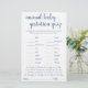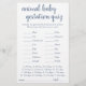 Tierschwangerschaft Quiz Babydusche oder Geschlecht enthüllen Party-Spiel (mit Antworten unten) mit einem lustigen, lässigen handgeschriebenen blüh-Skript. ANTWORTKEY: Pig-122, Kangaroo-37, Horse-336, Cat-63, Rabbit-33, Elephant-645, Enck-28, Sheep-148, Cow-284, Whale-360, Lion-108 Hund-63, Maus-20, Giraffe-419, Bear-220, Chimpanzee-243, Ziege-150 Für andere Farben oder passende Produkte, besuchen Sie bitte den JustFharryn Zazzle Store, oder kontaktieren Sie den Designer, c/o Fharryn@yahoo.com Alle Rechte vorbehalten. #zazzlemade