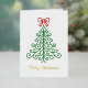 Moderne Weihnachtskarte ohne Foto mit einem niedlichen und schlichten Doodle eines Weihnachtsbaumes mit einem Bogen und dem bearbeitbaren Gruß "Frohe Weihnachten".