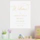 Dieses schlichte und elegante Willkommensschild ist die perfekte Ergänzung zu Ihrem Brautparty oder zu jeder Veranstaltung! Mit seiner eleganten Goldfolienschrift, die sich vor dem knalligen weißen Hintergrund wunderbar abhebt, empfängt dieses Schild Ihre Gäste und Sets herzlich zu einem unvergesslichen Anlass. Zur Anmeldung gehören zwei benutzerdefinierbare Textfelder unter der Begrüßungsmeldung, in denen Sie Ihren Ereignisnamen und Ihr Datum ganz einfach hinzufügen können. Diese persönliche Touch sorgt dafür, dass Ihre Gäste sich ganz besonders fühlen und verleiht Ihrem Dekor eine zusätzliche Eleganz.
