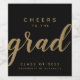 Abschluss schlicht schwarz und gold "Cheers to the Grad" Weinflaschenschild in modernem, schicken und eleganten Typografie-Stil. Passen Sie sich mit dem Namen des Absolventen und der Schule an.