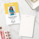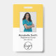 Gelbes Standard-Mitarbeiter-ID-Abzeichen mit Namen, Titel, ID-Nummer oder anderen Informationen und Ihrem Logo unter Ihrem Foto. Auf der Rückseite finden Sie Ihre Kontaktdaten und den Bar- oder QR-Code. Dieses berufliche Design eignet sich hervorragend für ein kleines Unternehmen, ein Krankenhaus oder ein Unternehmen.