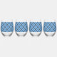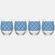 Einfaches Blau/Babyblau Gingham Diagonale Karierun Weinglas Ohne Stiel