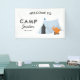 Wunderliche Geburtstags-Party-Willkommensfahne, die ein blaues Zelt mit einem Lagerfeuer nahe bei ihm kennzeichnet. Fertigen Sie dieses Produkt besonders an, indem Sie den Namen Ihr Kindes und Ereignisdatum addieren. Groß für Camping, Sleepover und Themageburtstags-Party im Freien.