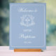 Einfaches Blumenkreuz auf hellblauer Taufe Willkom Acrylschild