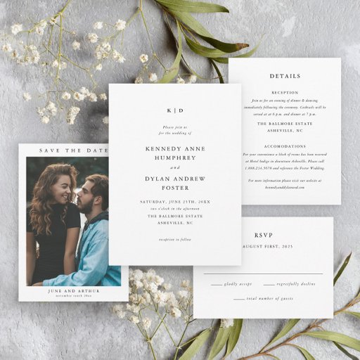 Simple minimal black and white wedding suiteDesignt von Stacey Meacham