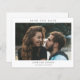 Einfaches Budget Foto Hochzeit Sichern Sie das Datum mit minimaler Typografie und Foto auf der Vorderseite. Die Rückseite hat weitere Details.