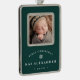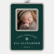 Ein wunderschönes klassisches Design zum Gedenken an die erste Weihnachtszeit des Babys, mit einem beliebten Foto auf einem Einsteckfeld. Personalisieren Sie Ihren Babynamen in klassischer Serifenschrift, zusammen mit dem Jahr, auf einem waldgrünen Hintergrund mit einem Single Schneeflocke Akzent.