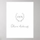 Klassisches Schwarz-Weiß-Poster mit einem einfachen Layout mit dem Monogramm in einem Kranz / Wappen und Ihrem Namen in einem eleganten Skript / Kalligraphie. Ein weibliches Design, das perfekt für ein Mädchen ist.