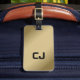 Einfacher eleganter kundengerechter Gepäckumbauentwurf mit IMITAT-Goldhintergrund und Ihrem Monogramm.