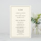 Einfaches Hochzeitsprogramm mit modernem und elegantem Design, oben mit zwei Buchstaben-Monogramm und Ihren Details, umgeben von einer dünnen Grenze. Der gesamte Text ist schwarz über einen cremefarbenen/Elfenbeinhintergrund und kann im Designbearbeitungstool geändert werden. Die Vorderseite hat Ihre Reihenfolge der Zeremonie und der Hintern hat Ihre Hochzeitsfeier und danke Ihnen Nachricht. Ein elegantes und stilvolles Design, das sich ideal für ein minimalistisches Paar eignet. Diese billigen Hochzeitsprogramme werden auf Papierbögen gedruckt, um eine preisgünstige Option zu erhalten.