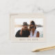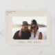 Eine schicke Hochzeit bewahrt das Datum Foto Postcard mit einem modernen, vollständig editierbaren dunkelbraunen Mönchstypografie-Skript gegen eine hellbeige Kraftform wie Papiertextur. +++++++++++ Persönliche Gestaltung mit Ihrem Foto, Text und Unterschrift auf der Vorder- und Rückseite! +++++++++++++++++++ Es ist für alle Jahreszeiten geeignet für elegante Hochzeiten.