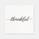 Fügen Sie Ihre Servietten diese Touch moderner Eleganz hinzu. Das Wort "Dankbar" in einem handgeschriebenen Schriftart mit langen Schwänzen. Ein trendiger und schicker Look. Probieren Sie es für besondere Feiertage wie Erntedank und Weihnachten. Gepflegte Veranstaltungen.