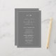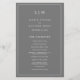 Einfaches Hochzeitsprogramm mit modernem und elegantem Design, oben mit zwei Buchstaben-Monogramm und Ihren Details, umgeben von einer dünnen Grenze. Alle Texte sind weiß über einen mittelgrauen Hintergrund und können im Entwurfsbearbeitungsprogramm geändert werden. Die Vorderseite hat Ihre Reihenfolge der Zeremonie und der Hintern hat Ihre Hochzeitsfeier und danke Ihnen Nachricht. Ein elegantes und stilvolles Design, das sich ideal für ein minimalistisches Paar eignet. Diese billigen Hochzeitsprogramme werden auf Papierbögen gedruckt, um eine preisgünstige Option zu erhalten.