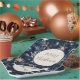 Das dunkelblau mit Schneeflocken auf diesen Tellern ist perfekt für eine Feier. Text kann geändert werden. Es sind passende Servietten verfügbar. AI unterstützte Grafik, die mit kommerziellem Einsatz erworben wurde. Kunstwerk: FreyasDigitalKunfts