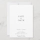 Mit dieser schlichten und eleganten "Save the Date" Hochzeitskarte verkünden Sie Ihren besonderen Tag im zeitlosen Stil. Dieses minimalistische Schwarz-Weiß-Design, raffinierte Serif-Schriftart und zarte Schriftzeichen-Akzente verströmen moderne Eleganz, die sich perfekt für jedes Hochzeitsthema eignet - von Party im Garten bis hin zu klassischen Festen im Ballsaal. Diese Vorlage ist vollständig mit Ihren Namen, Datum und Veranstaltungsort anpassbar und stellt sicher, dass Ihre Gäste ihre Kalender stilvoll markieren. ✨ Funktionen: Sauberes und zeitloses Layout Eleganter Serif- und Skript-Schriftart Pairing Leichte Anpassung am Zazzle-Editor Perfect Match mit formalen, minimalistischen oder schwarzen Krawatte Hochzeiten