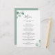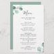 Elegantes Hochzeitsmenü mit einem schlichten Design mit Aquarellmalerei eukalyptusgrün in der oberen links Ecke und in der unteren rechten Ecke. Die Rückseite ist ein passender Schatten von mittlerem Salbei grün. Dieses rustikale botanische Hochzeitsmenü mit moderner Drehung eignet sich hervorragend für eine Hochzeitsfeier im Frühjahr oder im Sommer und wird auf einem flachen Blatt gedruckt, um eine preisgünstige Option zu erhalten.