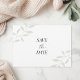 Die individuell gestaltete Hochzeit bewahrt die Dattelkarte mit modernem Design und elegantem Blattwerk.