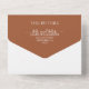Fügen Sie Ihr Lieblings-Foto oben auf diese Terrakotta und weißen dreifach gefalteten Hochzeitseinladungen, die Ihre Details in schicken Schriften in Sektionen und eine abnehmbare RSVP-Karte für Gäste zu ergänzen und zurück. **Vergessen Sie nicht, eine Briefmarke auf den RSVP-Kartenabschnitt zu legen.