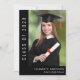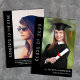 Einfache und elegante Ankündigung eines schwarzen Abschlusses mit moderner weißer Typografie. An der Vorderseite befindet sich ein Foto Ihres Absolventen, das Schuljahr sowie sein Name und seine Schule. Auf der anderen Seite, fügen Sie ein zusätzliches Foto, eine Botschaft der Glückwünsche und eine persönlichere Botschaft wie die Pläne des Absolventen.