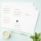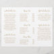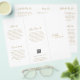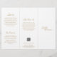 Moderne und berufliche Imitate Gold dreilfach Broschüre Flyer mit einem einfachen und minimalen Design mit Ihrem Namen in einem eleganten Drehbuch und zeitgenössischen Sans Serif Schriftart. Die Vorlage enthält mehrere geteilte Bereiche für Ihre Dienste in einem minimalistischen Layout. Der Rücken hat Ihre Kontaktdaten und optionalen QR-Code. Wenn Sie es vorziehen, kann der QR-Code im Entwurfstool entfernt werden. Im Inneren finden Sie Abschnitte für Firmeninformationen und eine Preisliste.
